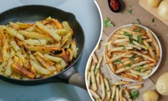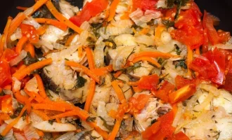 Čebulo in česen drobno sesekljajte in jih na olju prepražite, da postanejo prozorni. Dodamo naribano korenje in na kocke narezan krompir ter skupaj nekaj časa pražimo.