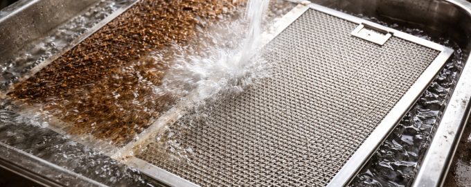 Čiščenje nape. Namesto da bi mrežice drgnil s čopičem, jih potopim v globoko posodo z vrelo vodo. Po petih minutah se vse obloge odstranijo same od sebe.