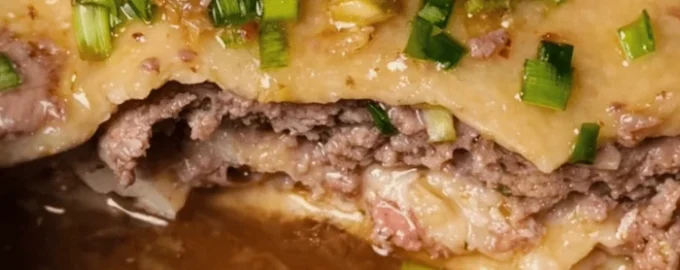 Jed je pripravljena v plasteh: tanko testo, sočno mleto meso in pikantna omaka. Rezultat je nekakšen križanec med kuhanimi cmoki in orientalsko različico lazanje.