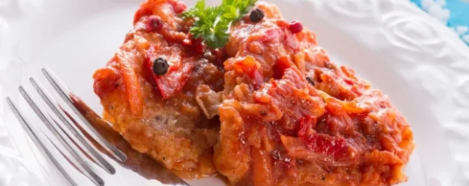 - V paradižnikovo omako položite ribe, zavrite in na majhnem ognju z zaprtim pokrovom dušite 15-20 minut.