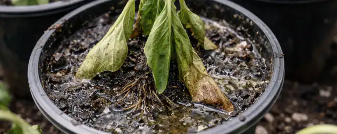 To je posledica koreninske gnilobe ali podhladitve, ko rastlina izgubi sposobnost sprejemanja vlage.