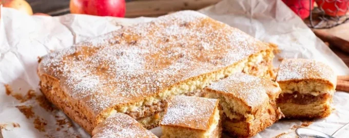 Preprost recept za okusno pito z jabolčnim nadevom brez jajc, mleka in masla. To je odlična možnost za tiste, ki se postijo ali se držijo zdrave prehrane, pecivo se izkaže mehko, zmerno sladko in vlažno.