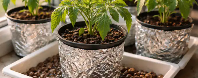 | Pregrevanje tal | Zvijanje listov navznoter | Zaslon iz folije na lončkih |