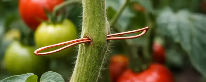 Ko je steblo paradižnika močno in debelo kot svinčnik, lahko začnete s postopkom. Z ostrim koncem žice nežno prebodite lupino. Dolžina odseka mora biti približno 3 do 4 centimetre. Baker bo začel delovati takoj, ko bo prišel v stik z rastlinskim sokom, in okrepil odpornost sadike od znotraj navzven.