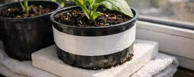 - – Na sončno stran lončkov nalepite navaden bel slikarski trak ali jih ovijte v bel papir.