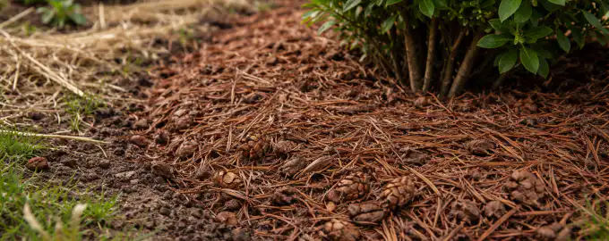 - – Zadrževanje vlage: Z gostim slojem iglic, debelim od 5 do 7 cm, lahko trikrat zmanjšamo potrebo po zalivanju.