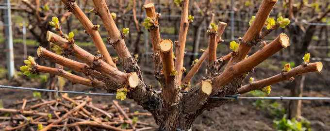 Prevleko je treba v celoti odstraniti in celotno trto pustiti, da se temeljito posuši na spomladanskem soncu pred prvim rezom.