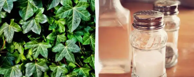 Če bršljan raste na mestu, kjer v prihodnosti ne načrtujete nobene zasaditve (na primer ob betonskih robnikih ali globoko v temeljih), lahko uporabite radikalno metodo s soljo. V enem litru tople vode raztopite 250 gramov soli in s tem neposredno zalijte glavno korenino.