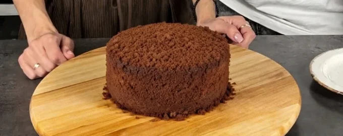 - Končni dotik: posip iz preostalega biskvita za okrasitev sladice.