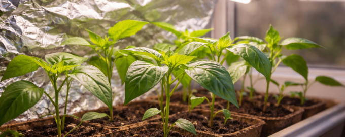 Glavna skrivnost močnih paprik je uporaba odsevnih zaslonov iz navadne folije za živila, ki vizualno podvojijo količino svetlobe brez dodatnih stroškov električne energije.