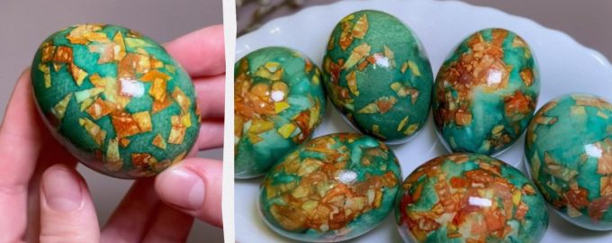 Kako pobarvati marmornata jajca – priročen prijem Ukrajinke
