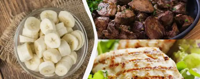 Porcija govejih jeter ali piščančjih prsi ima več vitamina B6 kot ena banana / kolaž My, foto: depositphotos.com