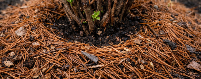 Pred raztrosom zbranega materiala se prepričajte, da ste iz kroga grmovja odstranili lanskoletne ostanke in nežno zrahljali zgornjo plast.