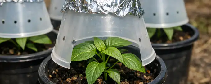 Za preprečitev venenja sadik paprike na soncu je ključno zagotoviti postopno prilagajanje na UV-žarke z uporabo difuzijskih zaslonov, kot sta gaza ali papir, ter izolirati koreninski sistem pred pregrevanjem s podlaganjem svetle pene pod lončke.