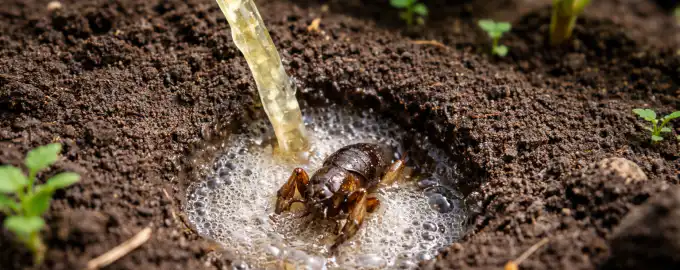 - Tekočino vlijte neposredno v luknjo, dokler se na površini ne pojavi škodljivec, ki ga nato mehansko odstranite.