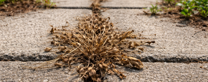 Najhitrejši način za odpravo zaraščanja med ploščicami ali na vrtnih poteh je uporaba koncentrirane kisline naravnega izvora. Navaden namizni kis uniči celične membrane neželenih poganjkov, zaradi česar se hitro skrčijo.