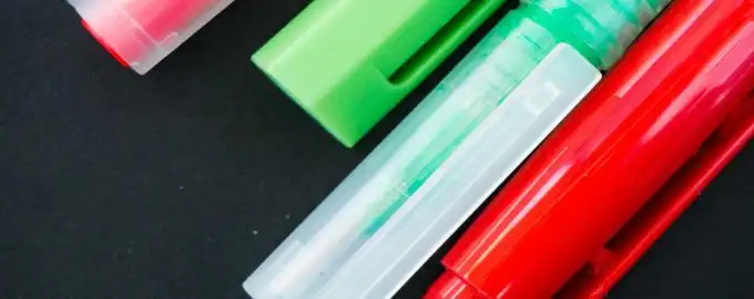 Nikoli ne potopite celotnega markerja v kis – tekočina bo zmehčala plastiko telesa. Uporabljajte le pisalno konico.