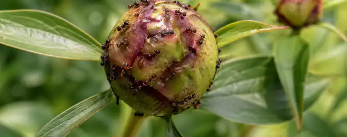 Mnogi vrtnarji se ob pogledu na žuželke na neodprtih cvetovih zgrozijo. Mravlje pridejo po sladkega nektarjaVendar pogosto prenašajo mrhe in lahko poškodujejo občutljivo strukturo cvetov, če je njihova populacija prevelika. Vendar pa pogosto prenašajo mšice in lahko poškodujejo občutljivo strukturo cveta, če je njihova populacija prevelika.
